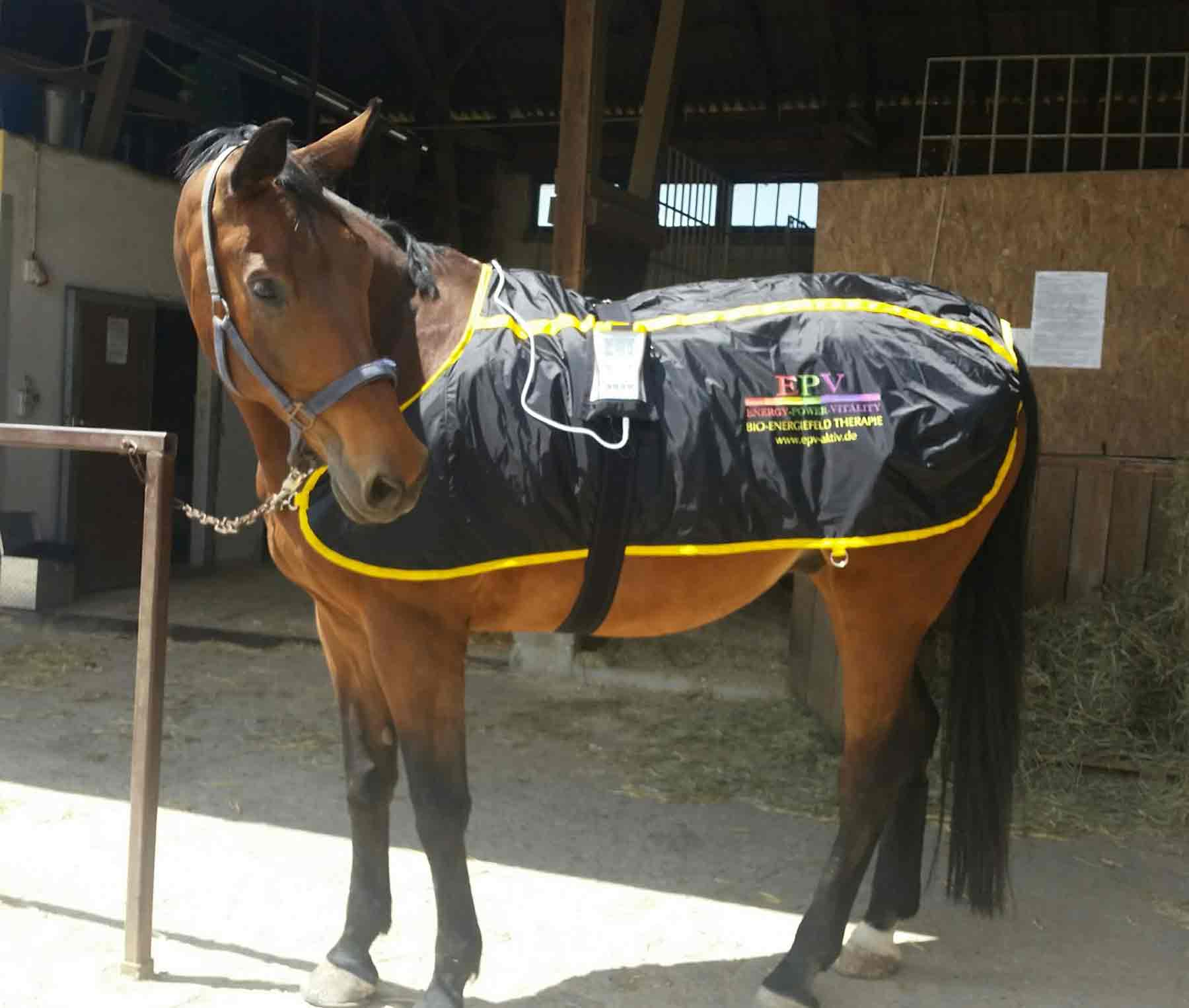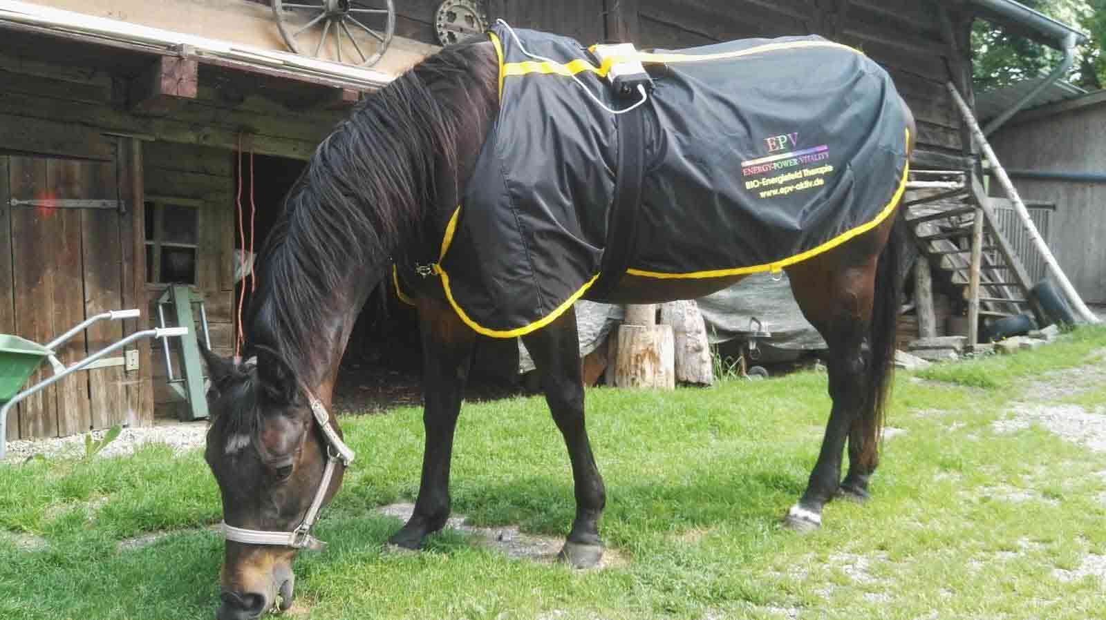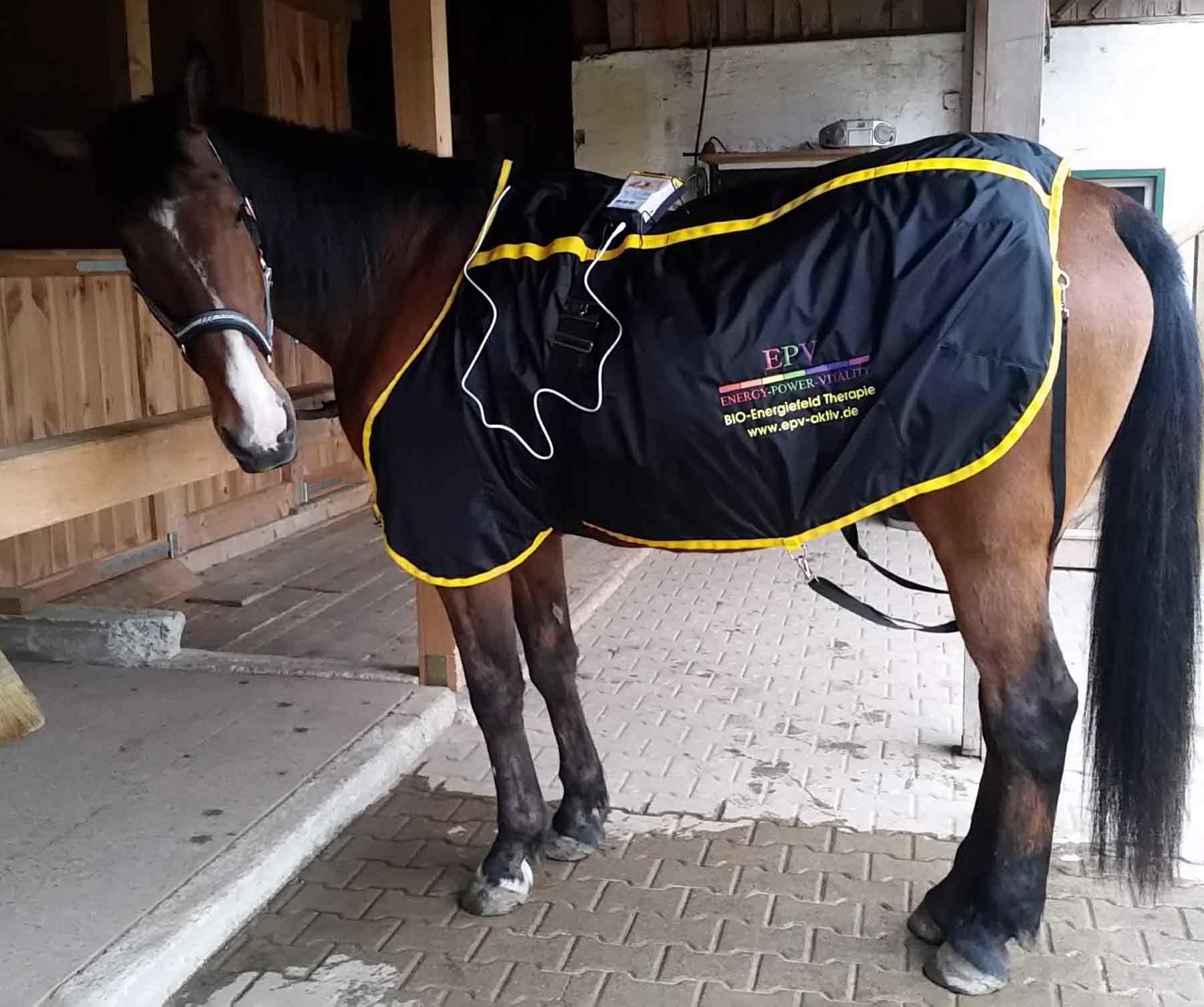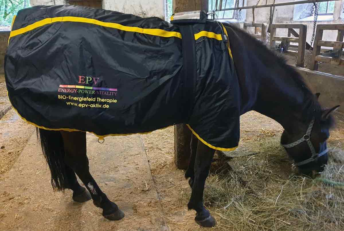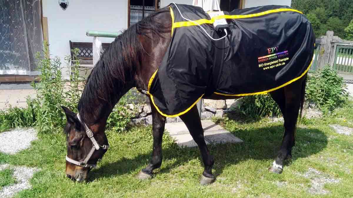 In einem Gespräch mit Renate erwähnte ich, dass meine Stute Probleme mit den Sehnen des rechten Vorderbeins hat und diese nach Belastung immer dick und warm werden. Ich hatte mich schon auf einen langen Ausfall und eine langsame Heilung eingestellt. Renate bot mir an, ihre Magnetfelddecke zu testen. Ich war offen für jede Verbesserungsidee, dankbar für diese Möglichkeit und sagte zu. Nachdem Edi und Renate mir die Handhabung der Decke genau erklärt hatten, legte ich sie meinem Pferd in der ersten Woche zweimal täglich und in der zweiten Woche einmal täglich auf. Und es wirkte! Der Stoffwechsel meiner Stute wurde unterstützt und der Heilungsprozess beschleunigte sich! Ein positiver Nebeneffekt, der mich jedes Mal aufs Neue freute: Mein Pferd entspannte sich bei jeder Anwendung und genoss diese sichtlich.Vielen lieben Dank, dass ich eure Magnetfelddecke testen durfte!